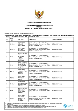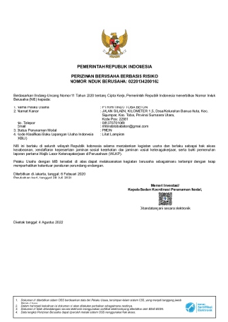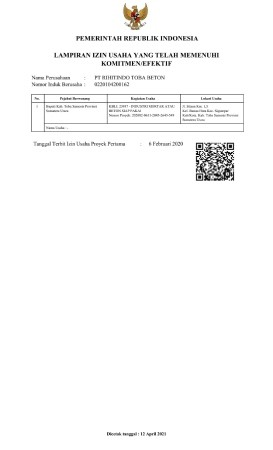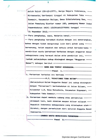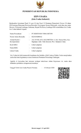 PT. RIHITINDO TOBA BETON (RTB) didirikan berdasarkan Akta Pendirian Perusahaan yang dibuat oleh Notaris Hermin Sianipar, SH, dengan Nomor 36 pada tanggal 27 September 2017 di Balige. Sebagai badan usaha yang sah, perusahaan kami telah memenuhi semua persyaratan hukum dan perizinan yang berlaku, memastikan keabsahan operasional serta kepercayaan mitra bisnis dan pelanggan dalam setiap layanan yang kami berikan. Legalitas ini menjadi landasan utama dalam menjalankan aktivitas perusahaan yang berorientasi pada profesionalisme dan integritas.